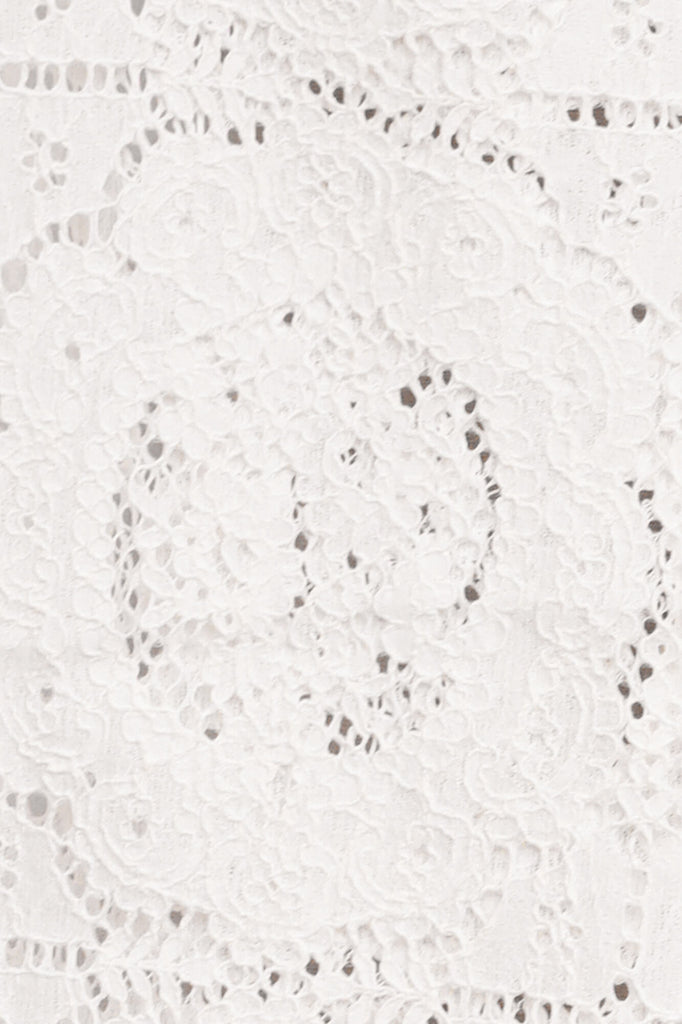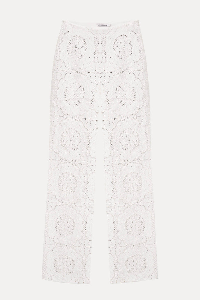 Step into ethereal elegance with these exquisite lace trousers. Crafted from a delicate semi-transparent lace featuring an intricate, large-scale pattern, these trousers exude femininity and grace. The wide, flowing legs provide both comfort and freedom of movement, creating a silhouette that is both stylish and romantic. The soft, milky white hue and detailed lacework make these trousers a versatile choice, effortlessly blending with both classic wardrobe staples and more daring statement pieces. Whether paired with sleek pumps for a sophisticated evening look or styled with edgy accessories for a touch of modern glamour, these lace trousers are sure to elevate any look.