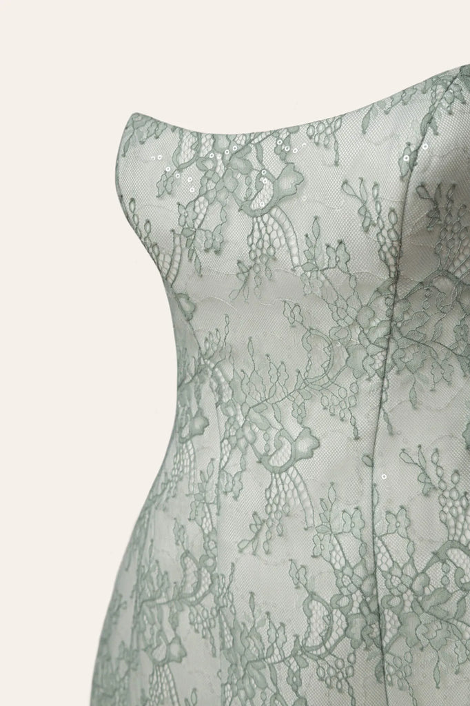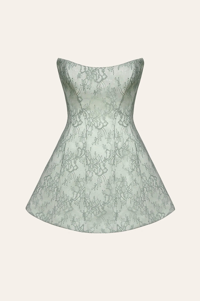Cute Mini Dress. Figured corset made of dense lace fabric, which perfectly holds its shape and gives the special volume garment needed. The inner design of the bodice has underwire cups, which allows the dress to fits perfectly to the bodyshape. The deep neckline underlines the collarbones and neckline area. The bell skirt gives a feeling of tenderness and playfulness.
