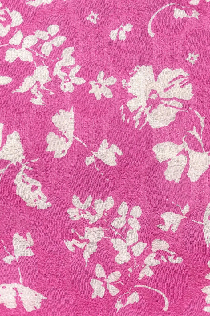 Bring the springtime freshness to your wardrobe with this floral mini dress in bright pink. Voluminous lantern sleeves makes the outfit airy and feminine, while a small front slit adds a little zest. The fitted silhouette will perfectly accentuate the figure.