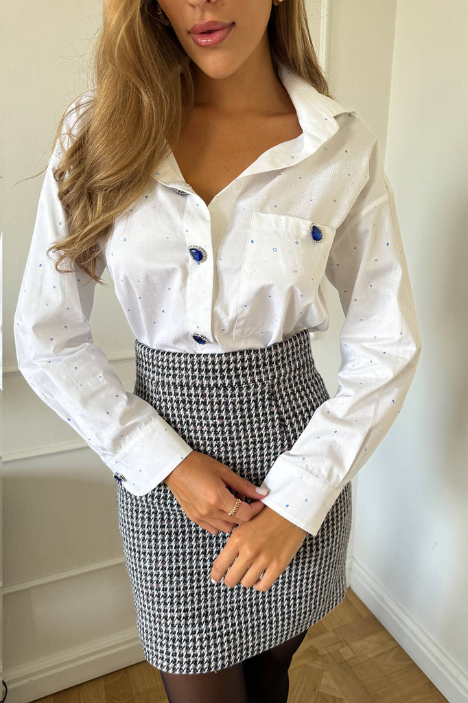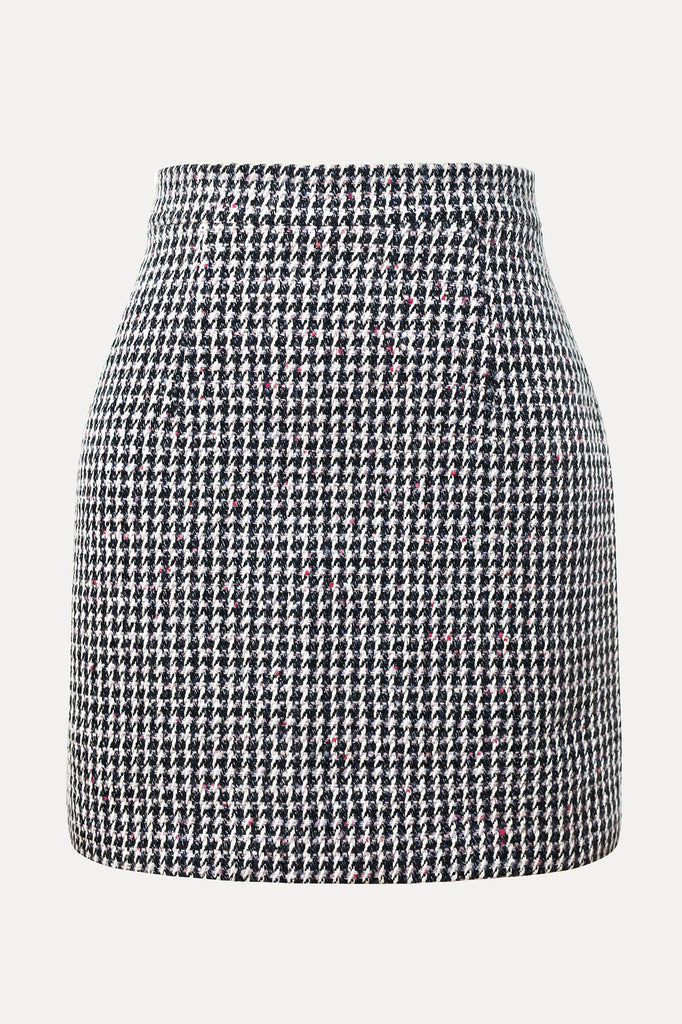 A perfectly tailored mini skirt in richly textured checked tweed. The high waist and belted silhouette create a flattering, contemporary look, ideal for layering throughout the autumn/winter season. The hidden zipper ensures a clean finish.