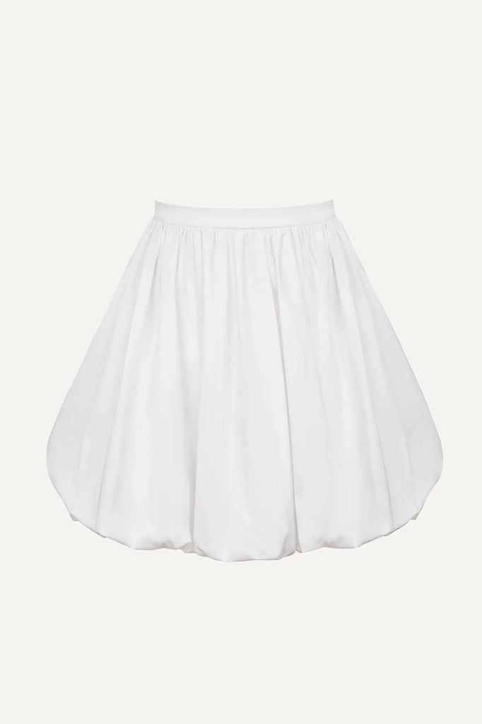 A full skirt in a mini length made of light cotton in a milky-white color. Skirt's high fit emphasizes the waist, making the silhouette super feminine and elegant. The bottom flounсe makes the look airy and playful. Double layered, hidden zipper fastener. To complete the look wear it with tops from our collection.