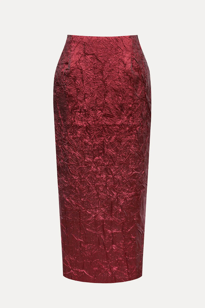 A maxi-length skirt in a rich, vibrant red jacquard. The figure-hugging silhouette gracefully highlights the natural contours of your body, while the shimmering jacquard fabric adds a festive and dazzling touch to your look. Fastened with a discreet hidden zipper, this skirt is the epitome of understated elegance.
