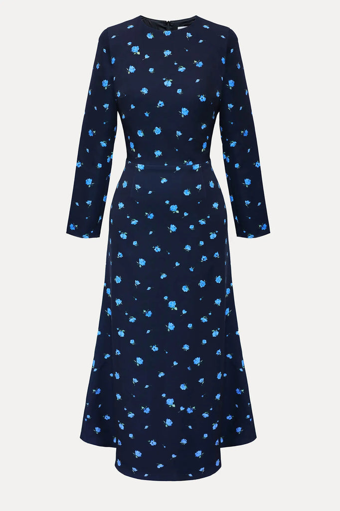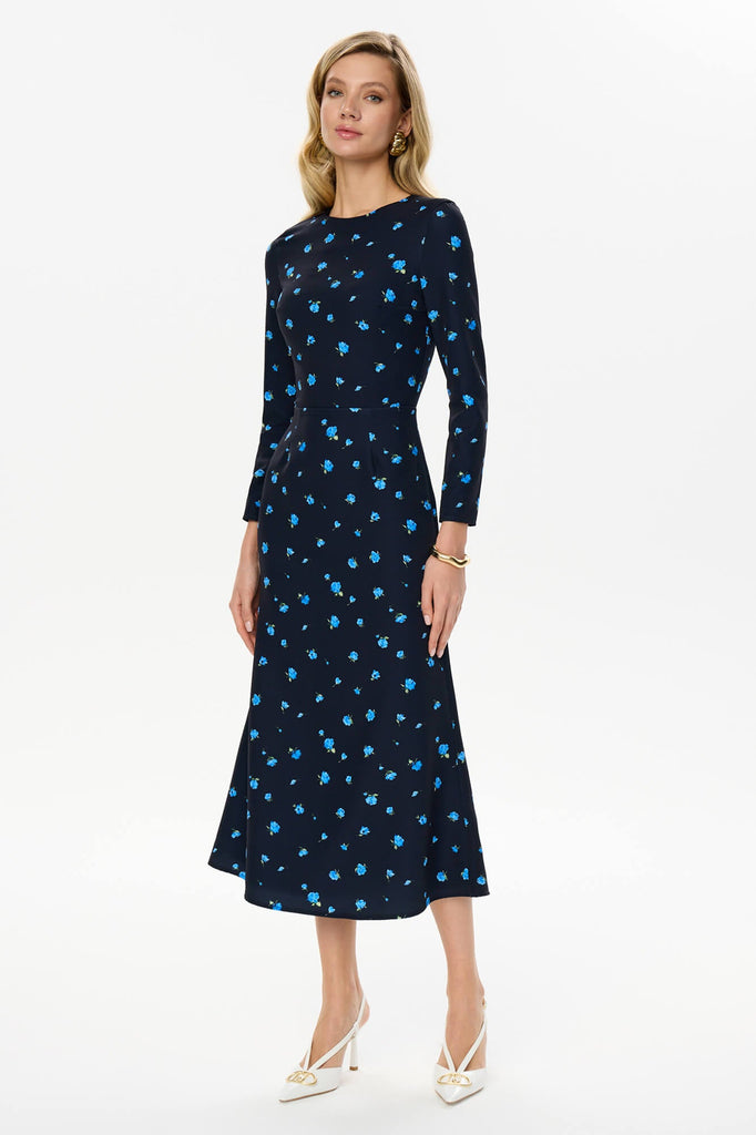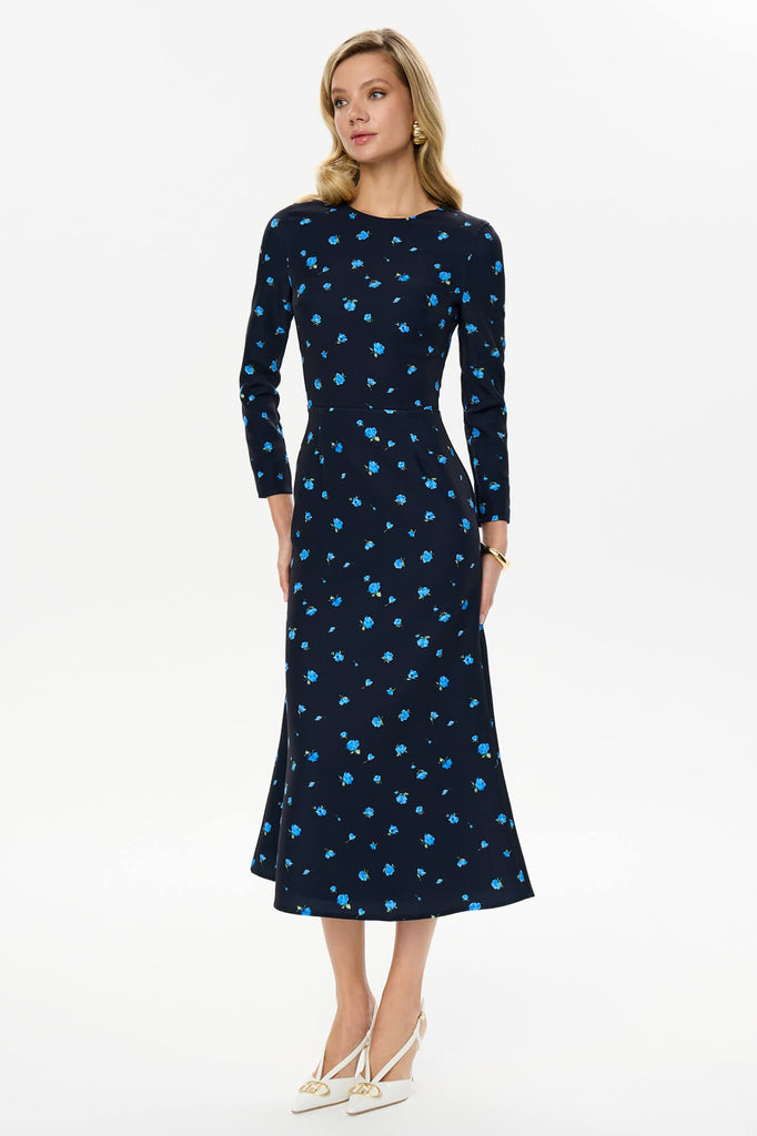 This silhouette midi dress with a godet skirt and flower pattern is for those who opt for a classy look, but want to add a little zest while keeping it minimalistic. Long set-in sleeves smoothly fit the shoulder. Lined.