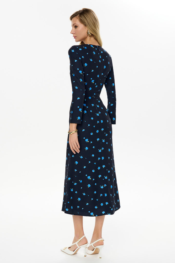 Godet Silhouette Long Sleeve Floral Midi Dress