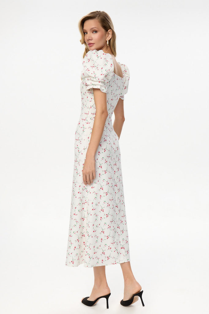 Godet Silhouette Square Neck Midi Dress