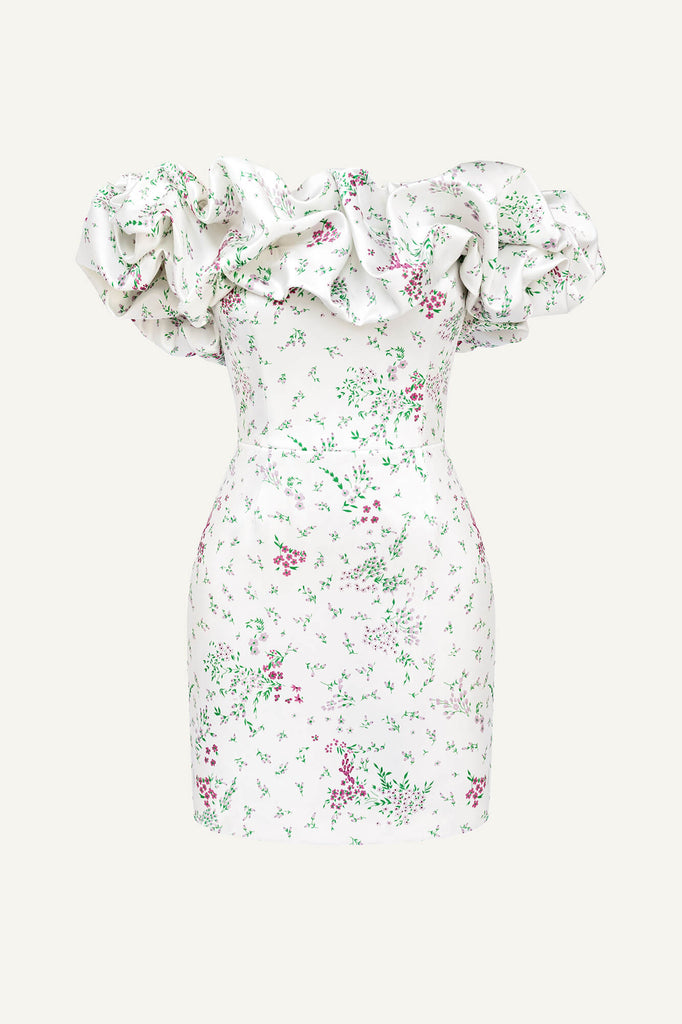 Embrace your femininity wearing our "Meringue" Floral Dress in mini length. Floral print creates such a pleasant and light vibes, flouncing on the top adds a little playfulness to the outfit. The corset makes the dress fit perfectly due to cups and bones. Made of dense fabric it holds its shape well and underlines the body shape. Lined.