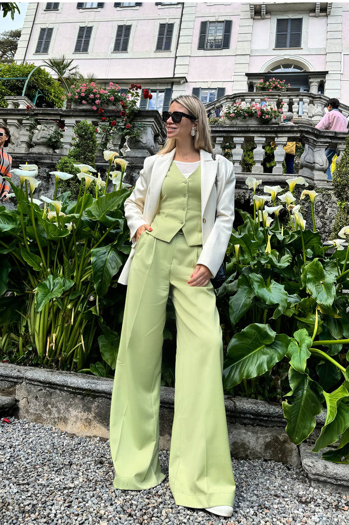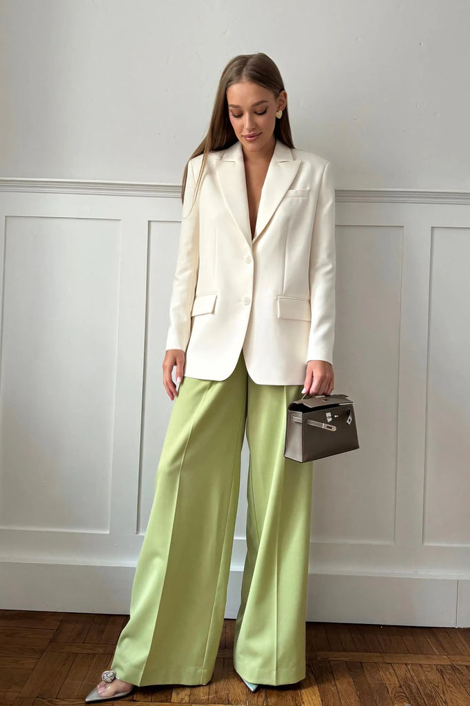 Wide trousers is an elegant and spectacular basic wardrobe piece. The loose cut makes it easy to move, an overstated waist with a wide belt emphasizes the figure. Complete the look with top and jacket from our collection.
