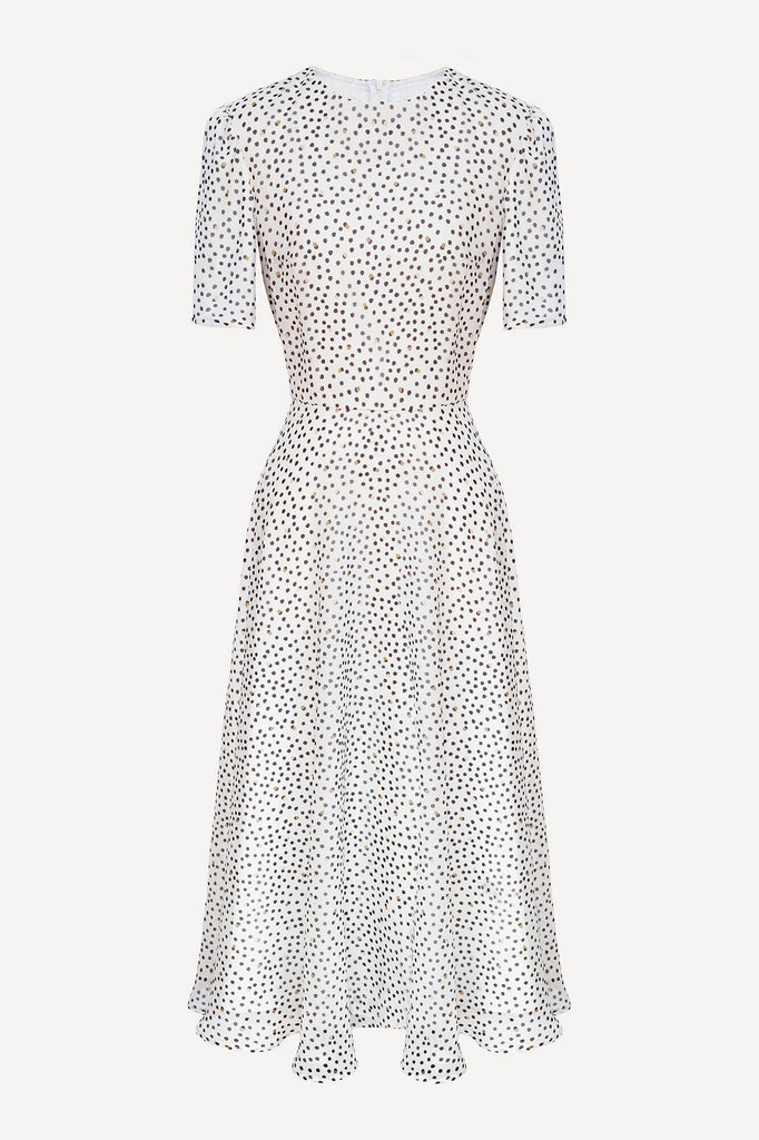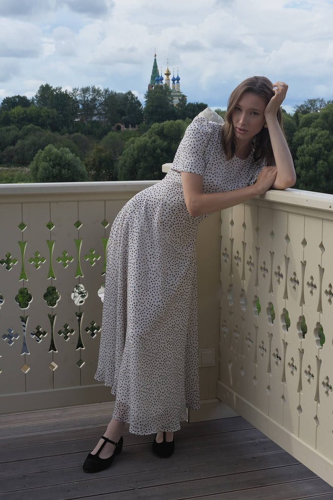 Double layer chiffon Midi Dress with short sleeves. A flying sun skirt will make your look airy and delicate while the print will add vivid accents. This crewneck classic silhouetted dress will definitely become a piece of your casual summer wardrobe. Lined. Invisible Zip Fastener.