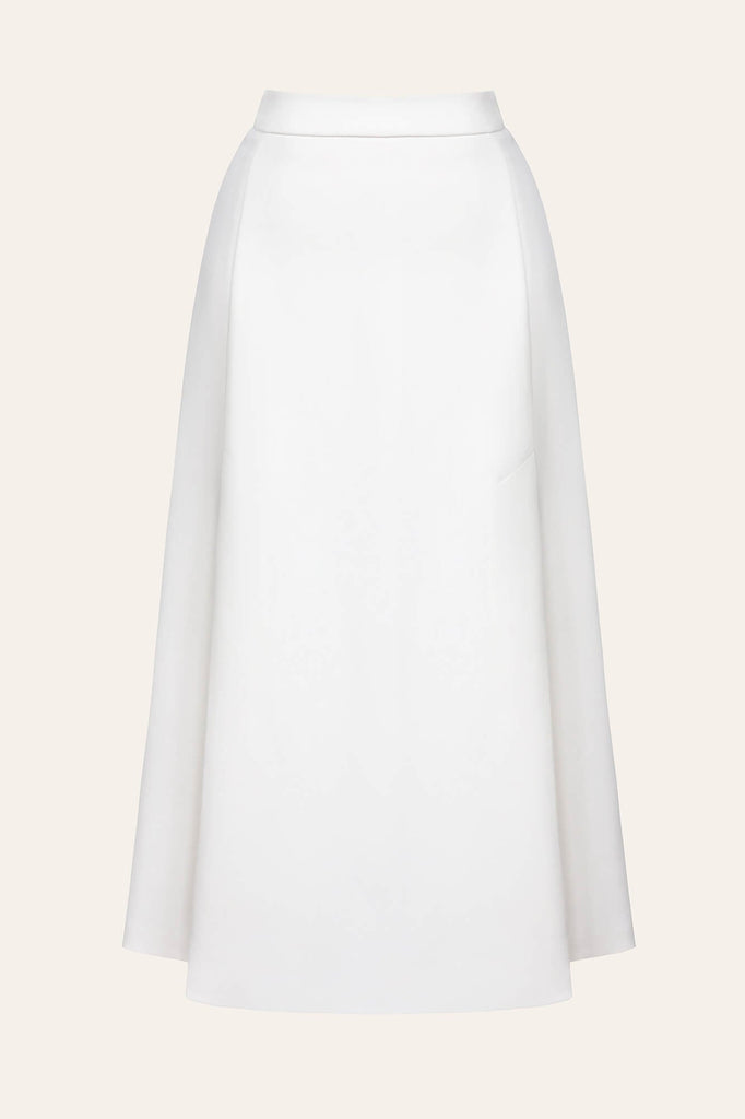 The skirt in midi-length in the milk shade. A deep slit emphasize all the figure advantages. To create an elegant evening outfit mix it with a jacket from our collection. Lined.