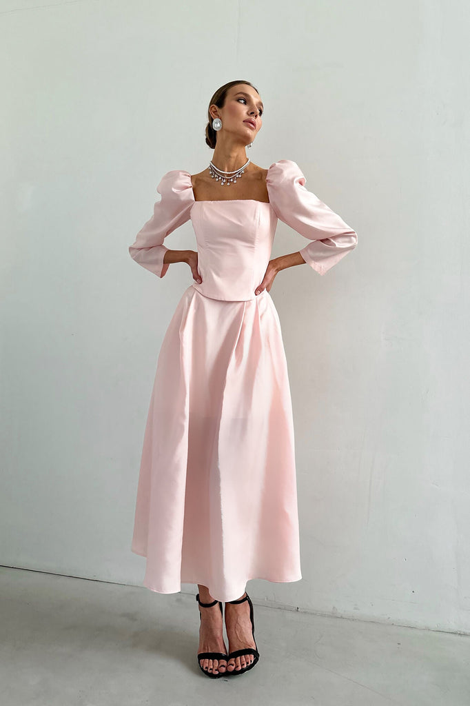 A fluffy midi-length skirt in tender pink made of natural silk. The side slits make it easy to move and add a little zest. To create a spectacular evening outfit сomplete it with a top from our collection.